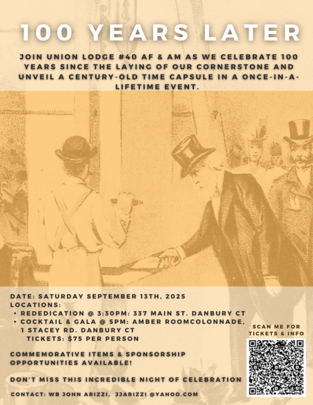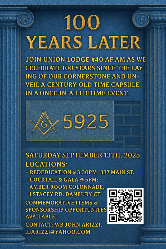 Brothers, I hope this finds you well! Below is a link to the Eventbrite site for the Union 40 Temple Rededication and Gala Event that we are having on Saturday September 13, 2025. RWB Carl Anderson will be performing the rededication ceremony at the lodge at 3:30 and then we will retire to the Amber Room for cocktails and dinner. We will also be revealing the contents of a 100 year old time capsule that was interned at the laying of the cornerstone. Our plan is to display the contents at the gala. In addition to the tickets, under the addons section of the Eventbrite, we have commemorative coins which we had struck for the event as well as sponsorship opportunities which include the chance for a brother to have his name added to a marker which will be reinterned for the next 100 years! Please consider joining us at this event and please also consider passing this along to any other brothers, friends or family that might be interested! Please get your tickets by September 1! Fraternally, John Arizzi https://urldefense.com/v3/__https:/www.eventbrite.com/e/union-lodge-40-100-year-temple-rededication-reception-and-gala-tickets-1009456530657?aff=oddtdtcreator Gala ad v2.jpg |