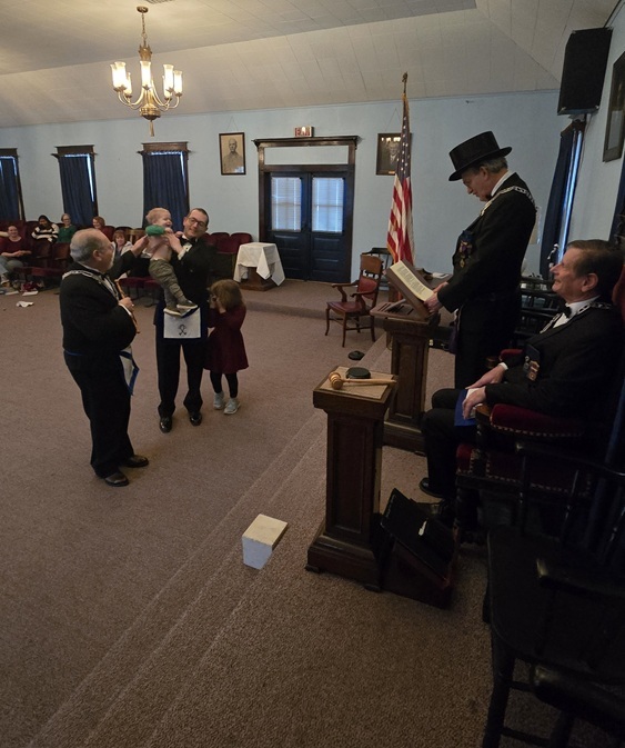 WB Brian Trueman with his two children being sworn in as Urial's 2026 Treasurer.